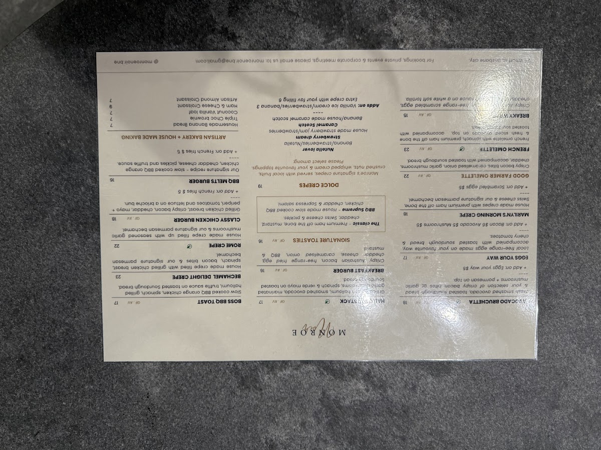 Monroe Noir Menu